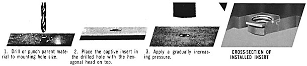 stainless steel Captive Nut or Stud is inserted so that